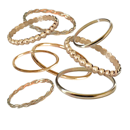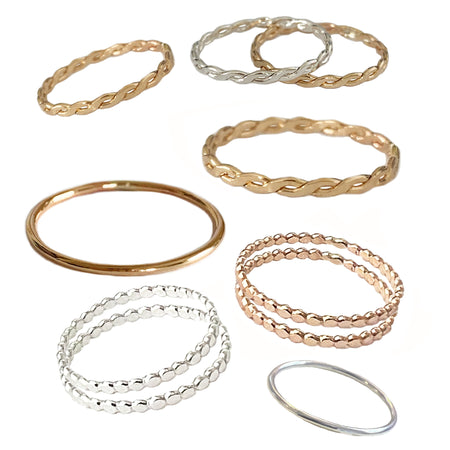 Start with just a few of your favorite designs in a good variety of sizes, with most between size 3 and 5. You can always add more as you build your business. We recommend simple rings like bands, braid, bee, and mini bee as great rings to order right out the gate.
