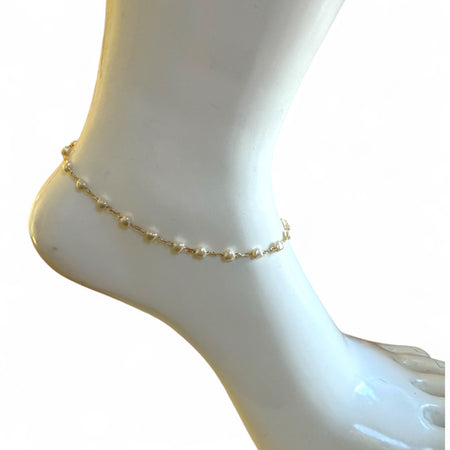 Heart Pearl Chain 18k Gold Fill Anklet - 3 Pack